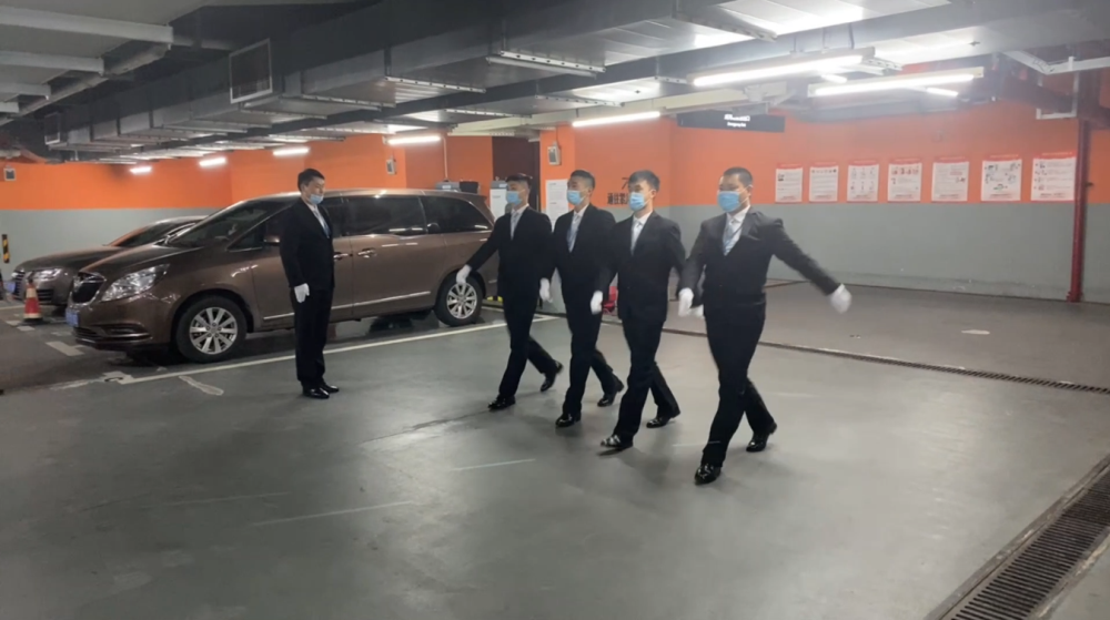 各項目團(tuán)隊提交的客服人員儀態(tài)及標(biāo)準(zhǔn)動作視頻中,客服姑娘們頭發(fā)盤起、妝容淡雅、服裝筆挺,她們或走、或站、或問候,舉手投足間,全是客服人員職業(yè)性的優(yōu)雅從容;保安團(tuán)隊上場隊伍精神飽滿,整齊劃一的踏步、洪亮有力的報數(shù)、消防操作后快速的舉手示意,都需要隊友之間的高度配合,彰顯出保安扎實的體能,也展現(xiàn)出團(tuán)隊內(nèi)部默契配合的凝聚力。