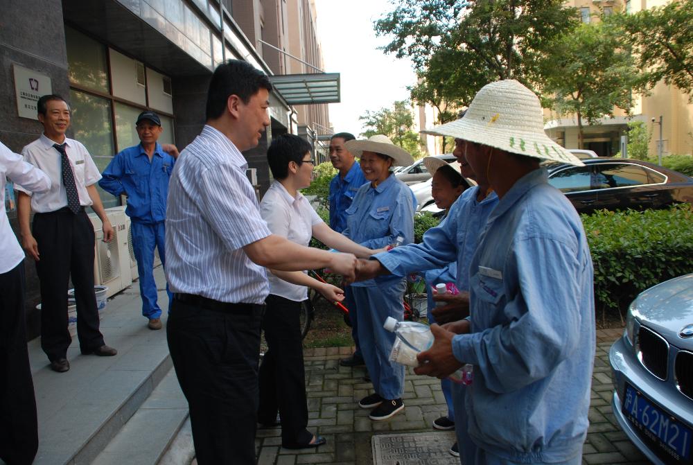 每到一處,公司領(lǐng)導(dǎo)雙手送上慰問品,并關(guān)切地囑咐他們注意避開烈日,多喝水,防中暑,確保工作安全,并對(duì)他們的付出表示感謝。公司領(lǐng)導(dǎo)還先后來到到員工休息室、服務(wù)中心辦公室,了解員工休息和辦公環(huán)境。公司領(lǐng)導(dǎo)要求各服務(wù)中心經(jīng)理要關(guān)心和確保勞保用品及時(shí)發(fā)放和防暑降溫措施的落實(shí)。