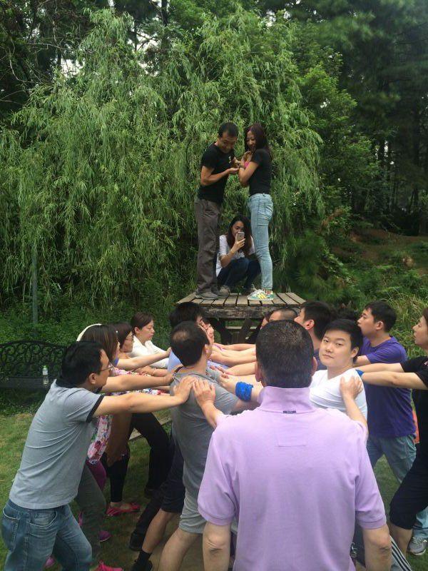 “軍訓(xùn)”、“神秘森林”、“定向奪寶”這三個(gè)活動項(xiàng)目從團(tuán)隊(duì)紀(jì)律到團(tuán)隊(duì)執(zhí)行、從團(tuán)隊(duì)執(zhí)行到團(tuán)隊(duì)配合,循序漸進(jìn)地讓每一位項(xiàng)目經(jīng)理體驗(yàn)到團(tuán)隊(duì)的力量。每個(gè)活動都有亮點(diǎn),在“軍訓(xùn)“中,從剛開始的“慢、亂、歪”到最后的“快、整、齊”,在短短的1小時(shí)時(shí)間內(nèi),大家都能快速適應(yīng)軍人的步伐;在”神秘森林“中,每位成員都要蒙上雙眼,通過各種方式找到自己的團(tuán)隊(duì),并有序排列,二支隊(duì)伍雖然有快有慢,但是每支隊(duì)伍都順利找到自己的團(tuán)隊(duì),沒有落下任何一位;在“定向奪寶”的活動中,感觸是最多的,團(tuán)隊(duì)要在2小時(shí)的時(shí)間,完成十幾項(xiàng)艱巨的任務(wù),不但考驗(yàn)了體能,更多的是考驗(yàn)團(tuán)隊(duì)的配合;第二天的“背摔”活動,更讓大家體驗(yàn)和感受到團(tuán)隊(duì)配合中的“安全”、“配合”、“突破”、“信任”、“團(tuán)結(jié)”的重要意義。