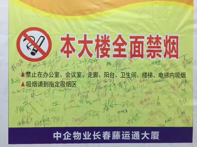 3月22日中午,長(zhǎng)春藤運(yùn)通大廈在樓宇大堂開展樓宇禁煙活動(dòng),邀請(qǐng)大廈業(yè)戶來(lái)活動(dòng)現(xiàn)場(chǎng)背景墻上簽字成為“禁煙小衛(wèi)士”,大家一起為營(yíng)造美麗綠色的大廈出一份力,名列前一百位的白領(lǐng)們,贈(zèng)送一盆多肉植物,代表中企物業(yè)的一份愛心,客戶踴躍參與禁煙活動(dòng),為創(chuàng)建綠色環(huán)保樓宇敬獻(xiàn)綿薄之力!