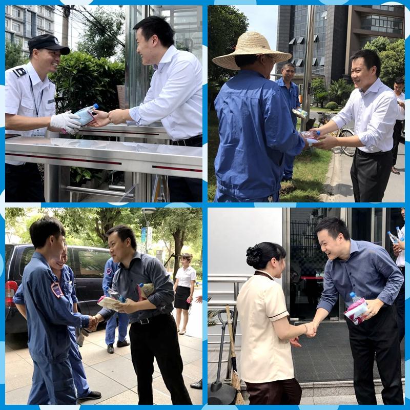 烈日炎炎,酷暑難當(dāng),連續(xù)不斷的高溫炙烤模式嚴(yán)峻考驗(yàn)著物業(yè)人。7月18、19日兩天,公司總經(jīng)理嚴(yán)鑌賢親自帶隊(duì)到各項(xiàng)目高溫慰問(wèn),向冒著高溫在烈日下堅(jiān)守崗位的一線員工表示親切慰問(wèn),為他們送去清涼,傳遞關(guān)懷。