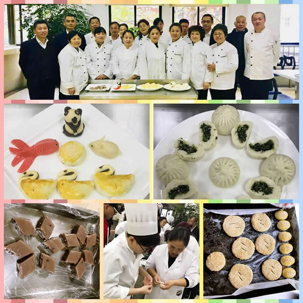 此次培訓(xùn)邀請(qǐng)了上海綠楊村酒家兩位資深中式點(diǎn)心技師現(xiàn)場(chǎng)傳授了富有中國特色的面點(diǎn)制作技藝。兩位老師結(jié)合理論與實(shí)操,細(xì)致講解了面點(diǎn)制作的技巧,讓參加現(xiàn)場(chǎng)培訓(xùn)的面點(diǎn)師傅們學(xué)會(huì)了金牌素菜包、棗泥拉糕、肉松咸蛋黃酥、曲奇等中西式面點(diǎn)的專業(yè)制作技術(shù)。課堂上大家與授課老師進(jìn)行互動(dòng)交流,并踴躍到操作臺(tái)進(jìn)行實(shí)操練習(xí),培訓(xùn)完成后,結(jié)合老師所傳授的制作技術(shù)及平時(shí)制作面點(diǎn)的經(jīng)驗(yàn),制作了富有創(chuàng)意的點(diǎn)心,展示了自己的培訓(xùn)成果,受到了評(píng)委們的一致好評(píng)。