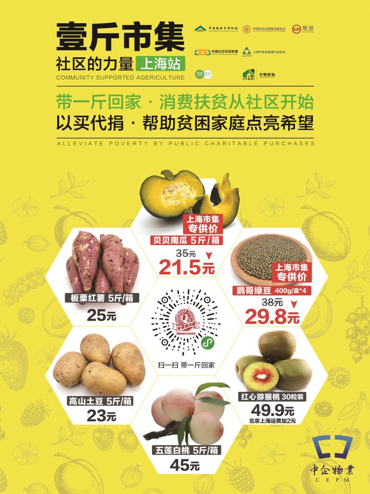 買買農(nóng)產(chǎn)品,就能幫助農(nóng)民伯伯脫貧致富,帶一斤回家,消費扶貧從社區(qū)開始。近日,由中國物業(yè)管理協(xié)會、中國扶貧志愿服務(wù)促進(jìn)會主辦,中國社區(qū)扶貧聯(lián)盟、易居農(nóng)樂協(xié)辦的壹斤市集“社區(qū)的力量”消費扶貧行動,在上海拉開攻堅戰(zhàn)序幕。