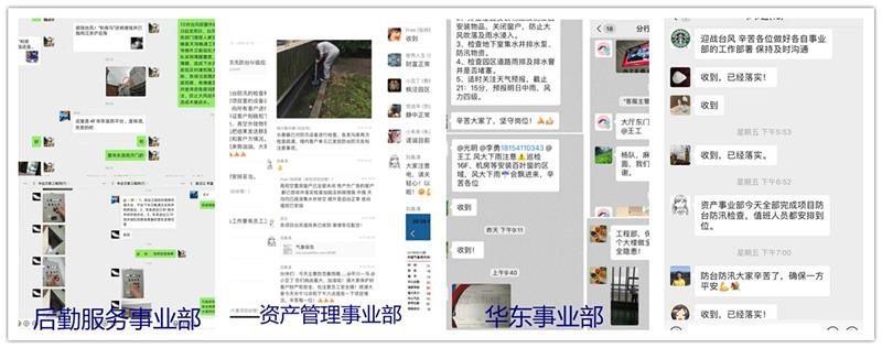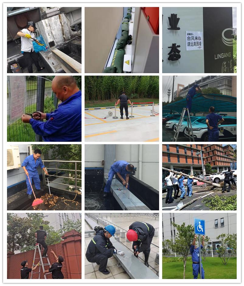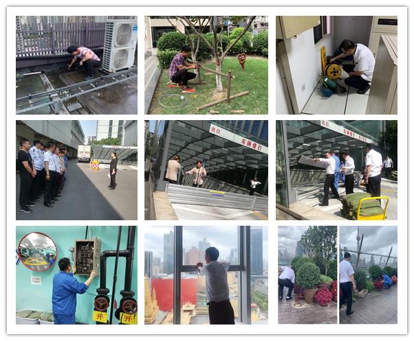 中企物業(yè)所服務(wù)的項目,有不少是校園和園區(qū),面積空曠風(fēng)雨更加,特別是地處外環(huán)的項目,受“利奇馬”的影響更是不可避免,雖有險情和突發(fā)狀況,但我們時刻關(guān)注控制,第一時間解決,排除障礙。嘉定一中服務(wù)中心在臺風(fēng)期間制定了24小時值班制度,編排了工程部值班表,工作人員晚上直接在室內(nèi)籃球場打地鋪,為的就是快速處理應(yīng)急情況;上海氣象局服務(wù)中心也是一片忙碌景象,為連夜加班的客戶48小時備足餐食,還連夜清理室內(nèi)進(jìn)水情況,后勤支持到位的,客戶才能放心。