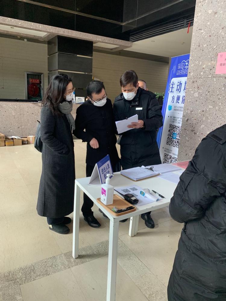 2月18日,上海市政府辦公廳相關(guān)領(lǐng)導(dǎo)蒞臨靜安創(chuàng)展大廈暗訪,檢查物業(yè)防疫工作的各類記錄、現(xiàn)場管控情況。還前往已復(fù)工客戶單元,聽取客戶對復(fù)工的感受和建議??蛻魧χ衅笪飿I(yè)的服務(wù)和防疫管理表示滿意安心,對復(fù)工后樓宇附近一些商業(yè)配套等需求向政府提出了建議。靜安創(chuàng)展大廈的物業(yè)服務(wù)工作經(jīng)受了暗訪的考驗,規(guī)范管控?zé)崆榉?wù),得到市領(lǐng)導(dǎo)的肯定。