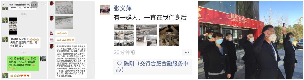 異地、大業(yè)主,加上疫情,我們需要的是自覺意識和嚴苛專業(yè)的服務(wù)標準。此時客戶比任何時候都需要我們給到他們安全感,而安全感源于專業(yè)、貼心?!坝幸蝗喝耍恢痹谖覀兩砗蟆?、“謝謝物業(yè)伙伴們,無論疫情還是風(fēng)雪,有你們真暖心”,這是客戶給到我們的反饋,是對我們工作的認可,更是對一線員工的一針強心劑。我一直覺得所有成功都應(yīng)該是厚積薄發(fā),所有出類拔萃都不是偶然。庚子年的開局似乎不是那么美好,許多人談“新冠”而色變,可他們卻勇往直前,因為他們懂得堅守的意義。我們的“黨員先鋒隊”更是第一時刻喊出了“抗擊疫情,我先上”的積極口號,在抗疫的過程中充分發(fā)揮了模范帶頭作用,他們右手握拳,目光朝著同一個方向,直視!有力!