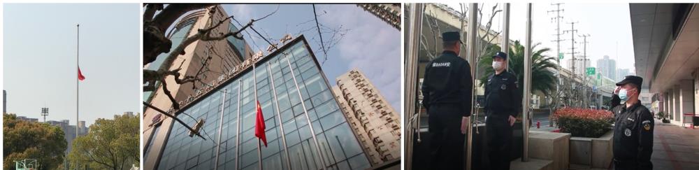 在中企物業(yè)的綜合服務(wù)事業(yè)部,各項(xiàng)目自發(fā)地組織進(jìn)行了默哀儀式。五星紅旗伴隨著國(guó)歌徐徐升起,然后旗手再把國(guó)旗下降三分之一,隨后服務(wù)中心的全體物業(yè)人員進(jìn)行了三分鐘默哀。我們相信,英雄們的軀體留在了寒冬,但他們的精神將從這個(gè)春天開始,一直延續(xù)下去,中企物業(yè)人定會(huì)牢記這份不朽的堅(jiān)守,不忘初心地走下去。