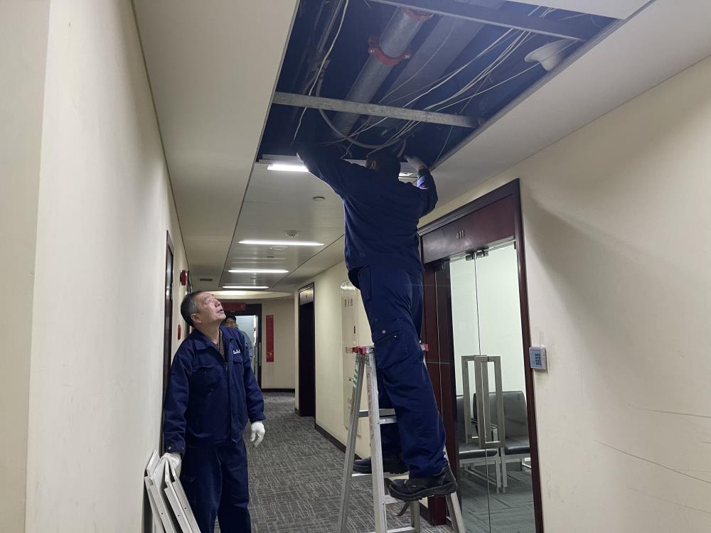 為清洗大樓內(nèi)所有公共過道吊頂,4月中旬,工程部師傅們開始拆下4樓公共過道吊頂,保潔部阿姨們則負責集中清洗,在工程和保潔的井然有序的共同配合下,目前已經(jīng)完成了4樓局部過道吊頂?shù)那逑垂ぷ?。后續(xù),將按照計劃進度在6月進入梅雨季之前,陸續(xù)完成全部樓層的吊頂清潔。