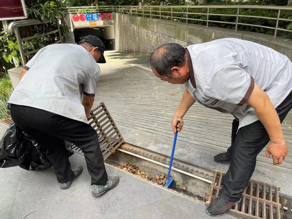 做到“溝要通、井要空、泵要動”,確保排水暢通;備足沙袋、擋水板、移動抽水泵等抗災救災物資;嚴格執(zhí)行24小時專人值班和領導帶班制度,如遇突發(fā)險情,按照預案第一時間救援處置;加強巡防排查高墜隱患問題;對外露設施及外立面進行全面檢查;發(fā)布預警信息,對全體客戶做安全防范宣傳告知。