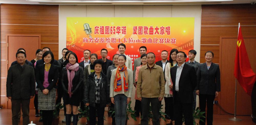 2014年11月我司參加《慶祖國65華誕 愛國歌曲大家唱》靜安商務委系統(tǒng)職工卡拉OK歌曲比賽。經(jīng)過一輪的初賽選拔,我司全部參賽選手順利進入決賽。同月21日下午4時,于靜安商務委4樓舉行決賽,經(jīng)過一個多小時的激烈角逐,最終我司“歌王”彭永強用嘹亮優(yōu)美的歌聲打動了現(xiàn)場的領導與評委并蟬聯(lián)冠軍!其余選手也均有獲獎。在此恭喜各位獲獎選手為公司勇奪榮譽。