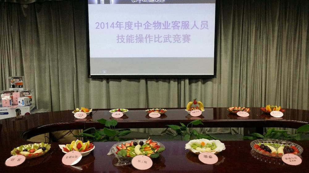 本屆比武活動(dòng)共有37名選手參加,分為五大環(huán)節(jié),14個(gè)項(xiàng)目包括:一、前臺(tái)禮儀禮節(jié)儀容儀表展示,二、英語(yǔ)演講比賽,三、客服主管應(yīng)知應(yīng)會(huì)問(wèn)答,四、水果拼盤比拼,五、才藝展示。第一環(huán)節(jié)的儀容禮儀展示,讓大家領(lǐng)略了中企物業(yè)客服佳麗的微笑和風(fēng)采,第二環(huán)節(jié)的英語(yǔ)演講比賽,各位選手八仙過(guò)海各顯神通,第三環(huán)節(jié)的應(yīng)知應(yīng)會(huì)問(wèn)答,每位客服主管精心準(zhǔn)備、沉著應(yīng)對(duì)、思維敏捷、邏輯清晰,處處體現(xiàn)了職業(yè)素養(yǎng),在第四環(huán)節(jié)水果拼盤的比賽中,每個(gè)項(xiàng)目客服團(tuán)隊(duì)的員工協(xié)作配合、獨(dú)具匠心地制作了一件件色彩繽紛、各具創(chuàng)意的水果拼盤作品,體現(xiàn)了嫻熟的動(dòng)手能力、過(guò)硬的服務(wù)技能、創(chuàng)新求變的工作態(tài)度;每個(gè)項(xiàng)目都賦予作品富有寓意的名字,例如“團(tuán)結(jié)一心”、“春華秋實(shí)”、“尊享.陽(yáng)光”、“欣欣向榮”、“錦繡前程”、“三羊開(kāi)泰”等都表現(xiàn)了員工對(duì)公司充滿了信心,將用自己的青春與公司共發(fā)展。而在才藝展示環(huán)節(jié)中則讓我們欣賞了員工利用業(yè)余時(shí)間親手制作的手工扎花、十字繡、美食作品,為比武活動(dòng)錦上添花。