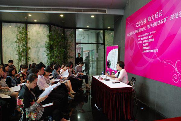 活動中,靜安區(qū)余姚路幼兒園丁虹園長為樓宇白領(lǐng)做了一場“幼兒教育與心理輔導(dǎo)講座”,分別從孩子的飲食、生活的自理能力、運(yùn)動等三方面為在座的家長進(jìn)行了育兒知識的講解,并以自身的經(jīng)驗向大家介紹了怎么去真正的關(guān)愛孩子,跟孩子們溝通互動。在互動提問環(huán)節(jié)中,許多年輕媽媽都踴躍舉手,將在育兒中遇到的困難、疑惑與大家一起分享討論。電視臺著名主持人肖亞蒞臨現(xiàn)場主持,燕子姐姐陳燕華現(xiàn)場為白領(lǐng)簽售“燕子姐姐講故事”書籍,在座的很多爸爸媽媽小時候都是聆聽著“燕子姐姐”講的故事長大的,因此“燕子姐姐講故事”的簽售現(xiàn)場異常的火爆,現(xiàn)場掀起了小小的高潮。