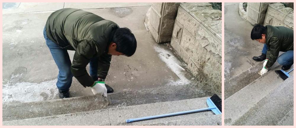 直到1月25日8時(shí)30分上海中心氣象臺發(fā)布解除寒潮藍(lán)色預(yù)警信號,他才稍稍松了一口氣,我們員工問他累不累,他笑著說:“作為我們物業(yè)人、中企人為保障校園的安寧、教育工作的順利進(jìn)行這些都是應(yīng)該做的…….”