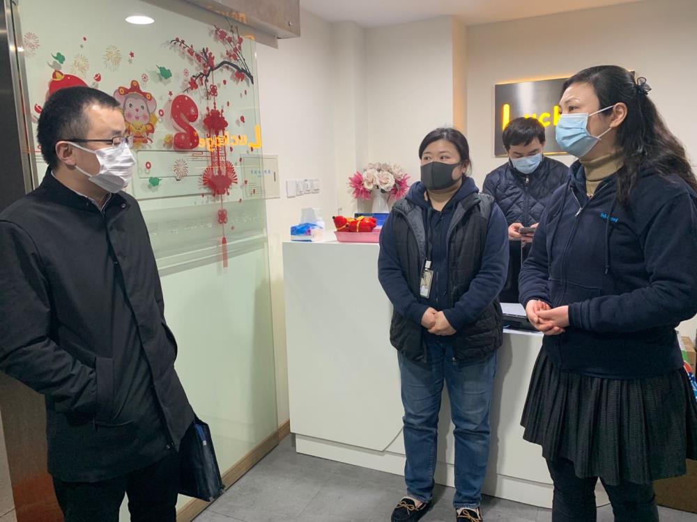 2月18日,上海市政府辦公廳相關(guān)領(lǐng)導(dǎo)蒞臨靜安創(chuàng)展大廈暗訪,檢查物業(yè)防疫工作的各類記錄、現(xiàn)場管控情況。還前往已復(fù)工客戶單元,聽取客戶對復(fù)工的感受和建議??蛻魧χ衅笪飿I(yè)的服務(wù)和防疫管理表示滿意安心,對復(fù)工后樓宇附近一些商業(yè)配套等需求向政府提出了建議。靜安創(chuàng)展大廈的物業(yè)服務(wù)工作經(jīng)受了暗訪的考驗,規(guī)范管控?zé)崆榉?wù),得到市領(lǐng)導(dǎo)的肯定。